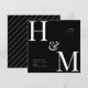 Carte de mariage à retenir la date avec des initiales grasses et une typographie élégante moderne. Avec une typographie moderne et élégante et un design de dossier rayé.
