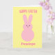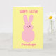 Une joyeuse carte de lapin de Pâques jaune et rose pour les enfants, que vous pouvez facilement personnaliser l'avant avec son nom.