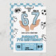 Invitez vos invités à célébrer le 6e ou 7e anniversaire d'un enfant cool avec cette invitation tendance et énergique ! Ce design présente un fond sombre et lunatique contrasté avec des accents et des graphiques bleus électriques gras.