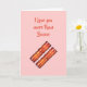 Cette carte simple est décorée avec du bacon sur le devant et le message mignon, Je t'aime plus que le bacon. Ce serait parfait pour un anniversaire, la fête des Pères, la fête des Mères, la Saint-Valentin ou toute occasion spéciale.
