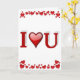 Carte de la Saint-Valentin avec Je t'aime U en texte rouge 3D. Personnalisez-la avec votre propre texte à l'intérieur.