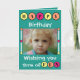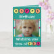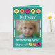 Personnalisez cette carte de voeux pour l'anniversaire d'un enfant. Bonne carte d'anniversaire pour les enfants. Je vous souhaite beaucoup de plaisir. Remplacez la photo par la vôtre, ajoutez un nom à l'intérieur et votre propre message. Jaune, orange et rose sur un arrière - plan vert.