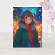 Jolie fille Anime sur une carte de Noël de jour d'hiver.
