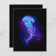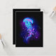 Grande méduse bleue, artistiquement dessinée, brillante, brillante, avec de longues tentacules sur arrière - plan noir avec bioluminescence violette. Méduse brillante.