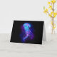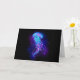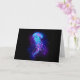 Grande méduse bleue, artistiquement dessinée, brillante, brillante, avec de longues tentacules sur arrière - plan noir avec bioluminescence violette. Méduse brillante.