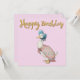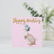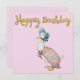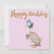 Jemima Puddle Duck avec arrière - plan rose pastel. Texte "Joyeux anniversaire" en or.