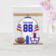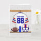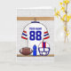 Un design sportif unique avec un maillot en fer américain personnalisé en grille de football en blanc à rayures rouges et bleues, accroché dans un vestiaire sportif avec casque de football, une bouteille d'eau et un football. Le maillot peut être entièrement personnalisé avec le numéro et le nom (ou l'âge) de votre choix pour faire un grand cadeau pour n'importe quel fan de football, un lecteur de grille ou un entraîneur de football. D'autres combinaisons de couleurs sont disponibles dans notre magasin pour vos propres couleurs d'équipe et nous accueillons des demandes personnalisées, contactez-nous par l'intermédiaire de notre boutique GiftsBonanza avant d'acheter et nous serons heureux de vous aider.