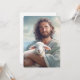 Cette carte à plat est illustrée d'une impression photo artistique de Jésus tenant un agneau.
