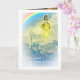 Jésus regarde à travers les nuages de tempête au-dessus dans un arc-en-ciel avec la croix qui monte du dessous. / L'art de la carte intérieure a un enfant ange tenant une bougie posée sur le dessus de l'eau des océans. / Texte de couverture : "Ayez foi, la tempête passera". / Carte intérieure texte incorporé : Je peux faire tout par le Christ qui me donne Force.