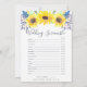 La carte de jeu de baby shower de style chic campagne correspond à notre collection de baby shower Flowerfields et présente une bordure supérieure de tournesols aquarelles jaunes et de petits bourgeons bleu marine. La carte double face vous permet d'obtenir deux jeux en un ! L'avant présente 'Il a dit, Elle a dit' et se retourne pour un jeu de mots sur le thème du mariage. Personnalisez avec le nom de la future mariée et la date de la douche. Pour une personnalisation supplémentaire, n'hésitez pas à me contacter !