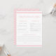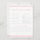 Jolie carte plate de prédiction et de conseils pour baby shower, avec un motif de rayures roses et blanches et de nœuds roses. Ce jeu de baby shower est parfait pour les baby showers "C'est une fille".