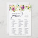 La carte de jeu de salle de mariage chic correspond à notre collection de salle de mariage Vibrant Bloom et présente des bordures florales aquarelles dans des tons de bijoux luxuriants. La carte double face vous permet d'obtenir deux jeux en un ! L'avant présente le Bingo de mariage, avec Qu'est-ce qu'il y a dans votre sac. Personnalisez avec le nom de la mariée et la date de la douche.