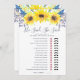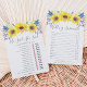 La carte de jeu de baby shower chic campagne correspond à notre collection de baby shower Flowerfields et présente une bordure supérieure de tournesols aquarelles jaunes et de petits boutons bleu marine. La carte double face vous permet d'obtenir deux jeux en un ! L'avant présente 'Il a dit, Elle a dit' et la verso présente un jeu de mots mêlés sur le thème du mariage. Personnalisez avec le nom de la future mariée et la date de la douche. Pour une personnalisation supplémentaire, n'hésitez pas à me contacter !