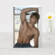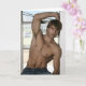 Cette belle carte comporte jeune un type beau, musculeux, sans chemise. Masquez à l'intérieur.