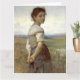 Image vintage d'une jeune bergère portant une robe paysanne simple avec une jupe et des pieds nus. Son troupeau broute à proximité dans un paysage ouvert. D'une peinture originale du 19ème siècle (1885) d'Adolphe Bouguereau. Tous droits réservés © 2014 padre art