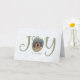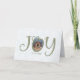 Carte de Noël simple, JOIE au Monde avec la scène de la nativité dans le "O" du mot joie et un subtil arrière - plan de flocon de neige. Changez le message intérieur, si vous le souhaitez.