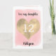 Une carte personnalisée rose et or fille 12ème anniversaire qui présente un coeur d'or contre l'aquarelle rose. Vous pouvez personnaliser le coeur doré avec l'âge dont vous avez besoin et ajouter son nom sous le coeur. Le message intérieur peut être facilement édité si vous le souhaitez. Le verso de la carte indique Joyeux Anniversaire, qui peut également être changé. Cela lui ferait un souvenir unique.