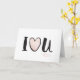Simple et mignon, ce "Je t'aime" écrit en noir comporte une texture de rose doré à l'intérieur du cœur. Des lèvres en rose doré soulignent la lettre e, pour sceller votre amour avec un baiser. Excellente carte de vœux pour la Saint-Valentin pour montrer votre amour et votre affection. À associer avec des fleurs, des chocolats ou tout autre cadeau que vous comptez offrir à votre valentin.