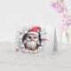 Donnez à votre carte de vœux de Noël une touche de la vie sauvage avec ce portrait d'animaux de Noël mignon mettant en vedette un hibou de Noël mignon avec un chapeau de Père Noël sur le devant, un fond de flocons de neige bleus à l'intérieur et un doux vœu "Joyeux Noël" dans une police enneigée à l'intérieur. Carte de vœux parfaite pour les amoureux des animaux et de la faune ! Uniquement chez Yips N' Howls.