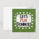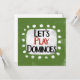 "Let's Play Dominoes" est un design de texte mignon avec une forme d'accent blanc entourée de points blancs texturés.