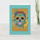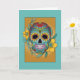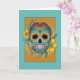 Carte Jour des Morts Sarcelle et Souci Crâne et Fleur