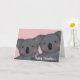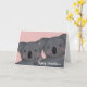 Une carte de la Saint-Valentin avec un couple de koalas illustrés sur fond rose. À l'extérieur, il est écrit "Joyeuse Saint-Valentin" et le message à l'intérieur peut être personnalisé à souhait grâce à la fonction de personnalisation. La carte parfaite pour une petite amie, une épouse ou une fiancée.