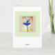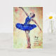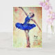 "Joy vient le matin" carte d'écriture (tous les mots et la police peuvent être changés). Ballerina en bleu contre un arrière - plan rose et crème doux.