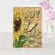 Un joli collage JOY, je l'ai utilisé pour un obtenir bien bientôt, mais il conviendrait aussi à une réflexion de votre carte. Tournesol, papillon jaune, tour Eiffel vintage et tasse de porcelaine. Avec une fleur vert foncé et une carte postale vintage, une bordure entoure le texte JOY