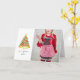 Illustration d'une tranche de pizza en forme de sapin de Noël avec garnitures rouges et vertes surmontées d'une étoile. Personnalisez le nom et l'année à l'intérieur. Personnalisez les photos à l'avant et à l'intérieur.