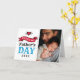 Cette carte de voeux photo personnalisée 1ère Fête des pères est le choix idéal pour les nouveaux papas. Cette conception typographique comporte une photo à droite pour vous changer à vous et à gauche une bannière rouge qui dit "Bonne 1ère Fête des pères" accentuée par un coeur rouge et avec une signature pour customiser. Conçu par l'artiste Susan Coffey.