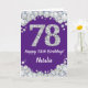 Joyeuse 78e Anniversaire Carte de Parties scintillant violet et argent avec nom personnalisé. Pour plus de personnalisation, cliquez sur le bouton "Customiser" et utilisez notre outil de conception pour modifier ce modèle.