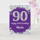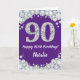 Joyeuse 90e Anniversaire Carte de Parties scintillant violet et argent avec nom personnalisé. Pour plus de personnalisation, cliquez sur le bouton "Customiser" et utilisez notre outil de conception pour modifier ce modèle.