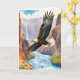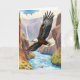 Carte Joyeuse Fête des Pères. Le devant de la carte comporte une belle illustration d'aquarelle d'un aigle volant au-dessus d'un canyon. À l'intérieur, un aigle perché sur une branche
