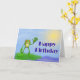 Grenouille sur lilypad agitant..joyeux anniversaire.