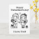Carte de Saint-Valentin personnalisée avec un garçon et une fille se tenant par la main le jour de la Saint-Valentin. Pages de coloriage simples et faciles de tous les côtés.