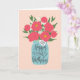 Un bocal de mason rempli d'un magnifique groupe de pivoines et de fleurs blanches avec les mots en lettres "Pour ma soeur" sur le tag et "Joyeux 19ème anniversaire" sur le bocal de mason. La carte d'anniversaire parfaite pour célébrer l'anniversaire de votre soeur ! © Ness Nordberg