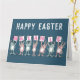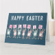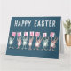 Carte de Pâques pour quelqu'un avec un nom de 7 lettres. Carte de Pâques amusante avec illustration de lapins en rose et bleu. Les lapins tiennent des cartes pour épeler le nom.
