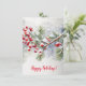 Carte de voeux Joyeuse avec une branche aux baies rouges. Peut être personnalisé, ajouter votre texte ou nom et date au verso de la carte. Le texte sur le devant pourrait également être modifié. Remplacez Happy Holidays par une autre salutation.