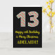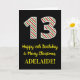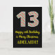 Le recto de cette carte de voeux amusante et simple sur le thème de Noël et d'anniversaire du 25 décembre comporte un grand numéro "13" avec un motif rayé rouge/blanc/vert, ainsi que le message "Joyeux 13e anniversaire et Joyeux Noël", et un nom personnalisable. L'arrière - plan du devant est noir de couleur. L'intérieur comporte un message de voeux d'anniversaire modifiable, ou peut-être pourrait-il être effacé et laissé vide si un message doit être écrit à la main à la place. Une carte d'anniversaire personnalisée comme celle-ci pourrait être une façon amusante d'envoyer des voeux d'anniversaire à quelqu'un qui célèbre son treizième anniversaire et qui est également né le jour de Noël (25 décembre). [~Z0000405]