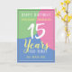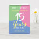 Célébrez un anniversaire avec une carte personnalisée indiquant le nom du récipiendaire, le nombre d'années et la date. Ajoutez également un message à l'intérieur. Carte d'anniversaire pour un 15 ans.