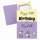 Carte Joyeux 18ème anniversaire nom jaune violet