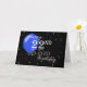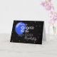 Une carte d'anniversaire pour un 22ème anniversaire avec un arrière - plan noir, un ballon bleu et des tourbillons épars et étoiles.