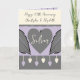 Carte de voeux pour un anniversaire Mariage de 25 ans d'argent. Ajoutez des noms et un message. Joyeux 25e anniversaire de Mariage. Aimez les coeurs et les formes des feuilles. Gris, crème et violet.