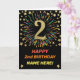 Carte Joyeux 2e anniversaire Black & Gold Rainbow Firewo