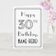 La face avant de cette élégante carte de vœux de fête d'anniversaire sur le thème Art déco des années 1920-1930 porte le message « Joyeux 30e anniversaire » et un nom de destinataire modifiable. Le nombre « 30e » sur le devant a un style fantaisiste et il y a également une bordure. L'intérieur comporte un message de vœux d'anniversaire personnalisé, ou pourrait éventuellement être vidé et laissé vide si un message doit être écrit à la main à la place. Une carte de vœux d'anniversaire élégante et modifiable comme celle-ci pourrait être envoyée pour célébrer le trentième anniversaire de quelqu'un. [~Z0000641]