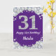Joyeuse 31e Anniversaire Carte de Parties scintillant violet et argent avec nom personnalisé. Pour plus de personnalisation, cliquez sur le bouton "Customiser" et utilisez notre outil de conception pour modifier ce modèle.