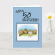 Bonne carte d'anniversaire 50e - pour lui. Chien de dessin dans le jardin avec arrière - plan bleu.