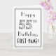 L'avant de cette élégante carte de voeux art déco des années 1920-1930, décorée sur le thème de l'anniversaire, comporte le message "Joyeux 55e anniversaire" ainsi qu'un nom de destinataire personnalisé. Le numéro "55ème" sur le devant a un style soigné et doublé, et il y a aussi une bordure multi-lignes. L'intérieur a un message de voeux d'anniversaire personnalisé, ou peut-être peut-être être effacé et laissé vide si un message doit être écrit à la main à la place. Une carte de voeux luxueuse et customisée comme celle-ci pourrait être envoyée pour célébrer le cinquante-cinquième anniversaire de quelqu’un. [~Z0000641]