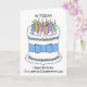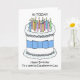 Dessin d'un grand gâteau blanc orné de bougies éclairées et d'un grand arc bleu. Les mots "60 Today Happy Birthday to a special girl-in-law" accompagnent l'image.