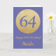 Bonne carte de 64e anniversaire et Parties scintillant d'or avec nom personnalisé. Pour plus de personnalisation, cliquez sur le bouton "Customiser" et utilisez notre outil de conception pour modifier ce modèle.